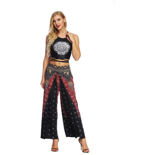 Women’s Wide Leg Boho Yoga Harem Pants Comfy Gypsy Hippie Indian Thailand Bohemian Palazzo Pants Smocked Waist